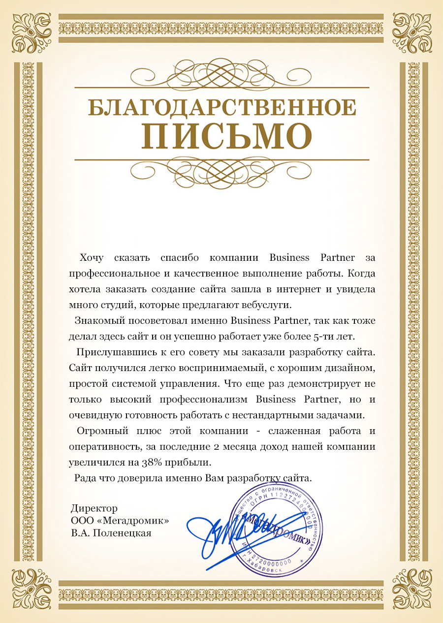 Мы рады возможности продолжить наше сотрудничество и в ближайшее время намерены заказать «BusinessPartner» создание лендинга с уверенностью в таком же блестящем результате.